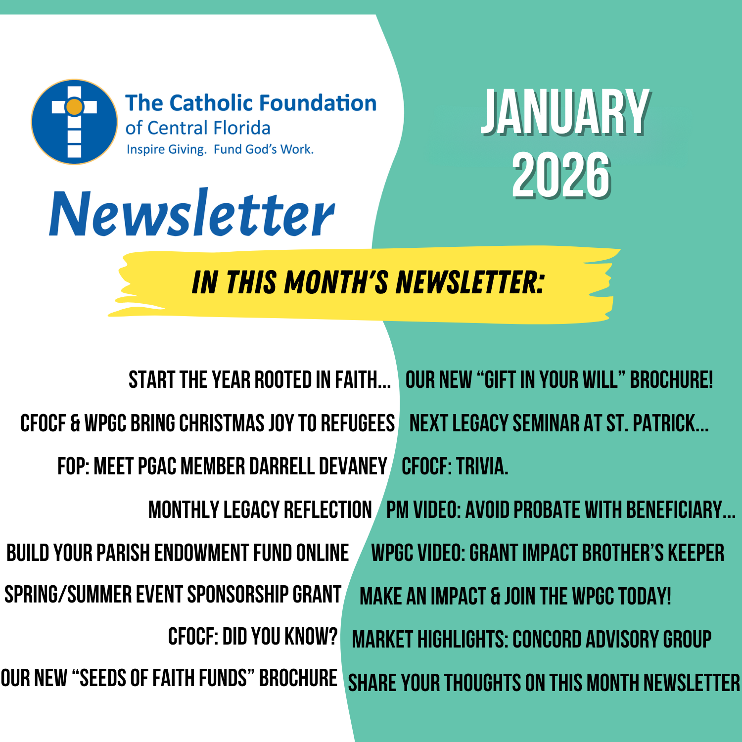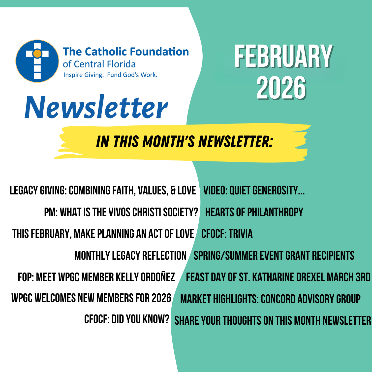 Since 2008, The Catholic Foundation of Central Florida has partnered with generous donors, pastors and Catholic lay leaders to inspire giving that impacts thousands of lives across Central Florida. In the past year, we have helped our pastors deepen the faith of their parishioners, supported donors with complex giving transactions, and stewarded funds through Catholic compliant, socially responsible investments. Our blessed partnerships have inspired giving and provided us with the resources to distribute $2 million to support our community’s spiritual and corporal needs. We invite you to join our St. Katharine Drexel Society by making a gift to The Catholic Foundation which will help us to serve others, deepen faith and bring our Church to its Fullness of Charity.